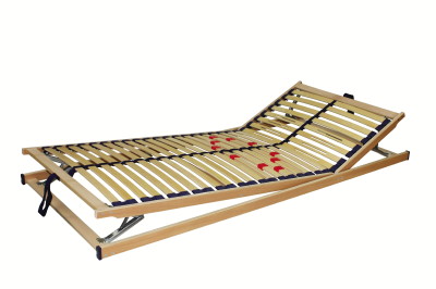 Lattenrost 28 Federleisten. Kopf und Fussteil verstellbar. Der Lordosebereich ist im Härtegrad verstellbar.